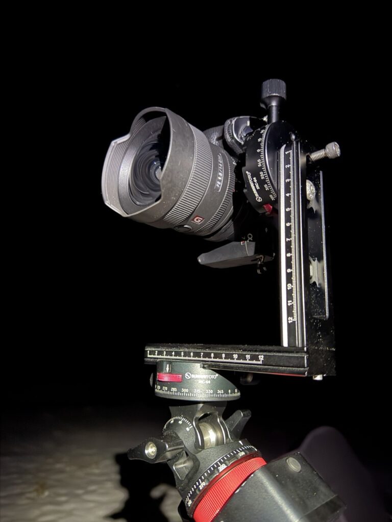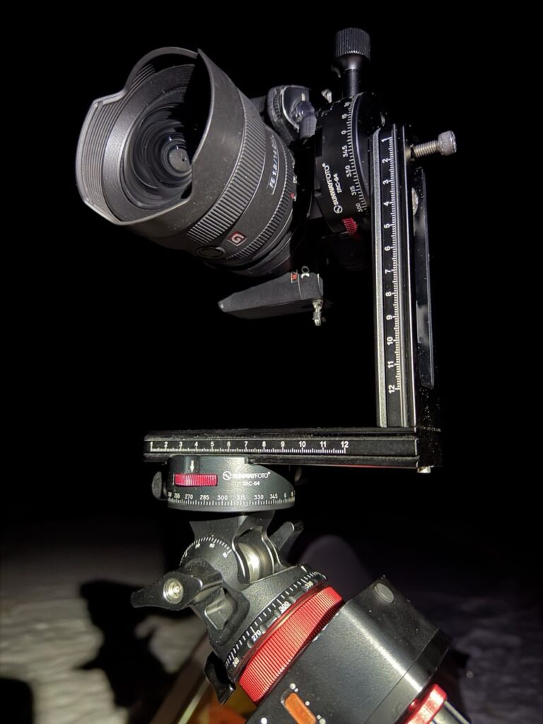 El verdadero valor del IRC-64 aparece cuando se integra en un setup de tracking nocturno. Al utilizar un tracker como el MSM Nomad o cualquier otro, la rótula que va montada sobre él queda inclinada según la latitud, lo que introduce una geometría poco favorable para la realización de panorámicas. Esta inclinación afecta tanto a los giros laterales como al control del ángulo vertical, dificultando la repetibilidad de los encuadres y complicando especialmente las panorámicas de varias filas.